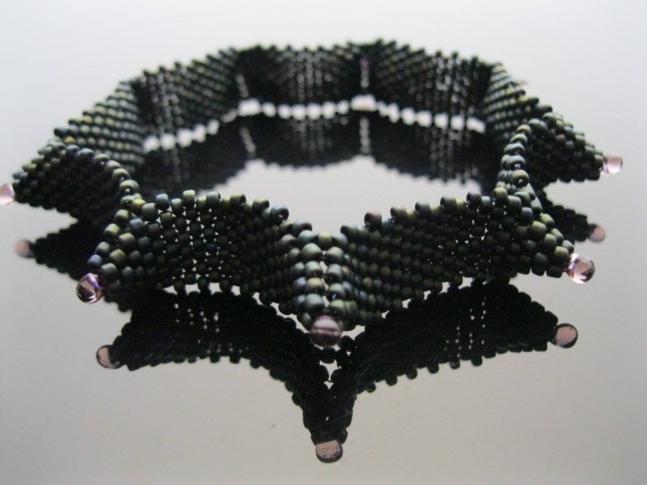 Design Notes: The Classic 9-Horn Bangle design has 9 asymmetric, but nicely-balanced, horns. These bangles are thin (about 0.5″ wide) and perfect for wearing multiples or stacking with other wrist jewelry. The Classic 9-Horn Bangle is the basic form which all my other 9-horn and stepped microhorn designs are inspired by and built from.