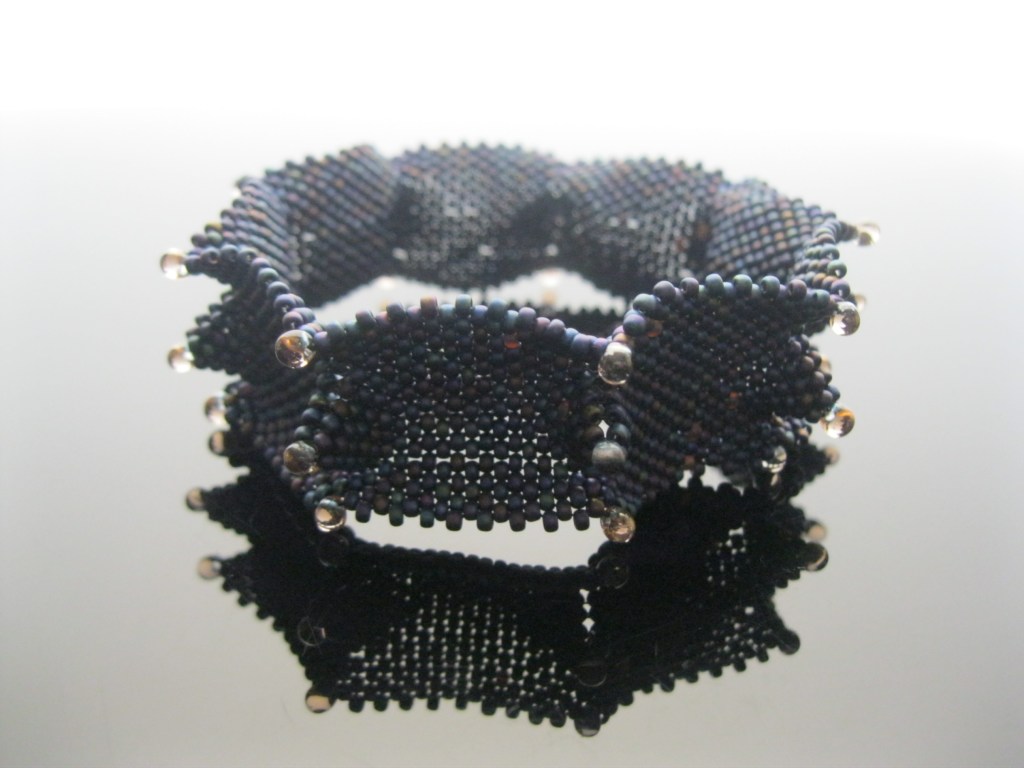 Design Notes: The Flared 9-Horn bangle is built off the Classic 9-Horn bangle architecture with added in-line side-flares on both sides of the horns for a little extra width (almost 1″ wide).