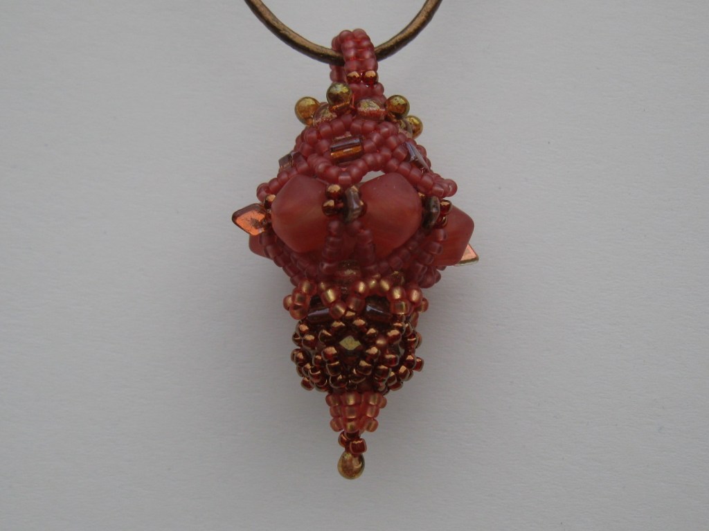 Design Notes: The Freeform Netting Necklaces are OOAK wearable micro-sculptures made using various beads from my stash. They are strung on 18″ long leather cord with a 2″ plated base-metal extender chain and lobster clasp.